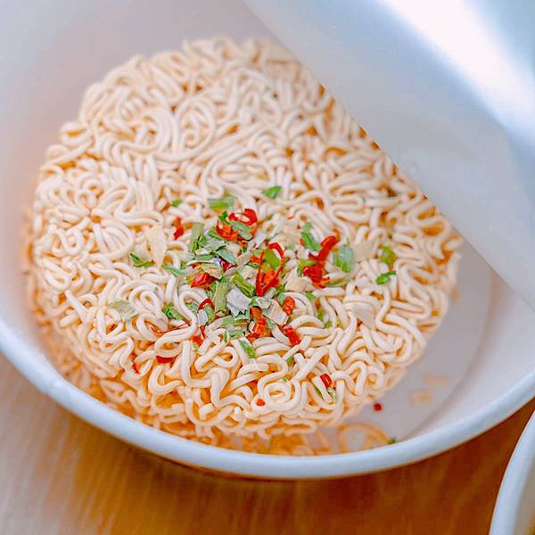 先將實物包倒出,有乾燥蔥花及些許辣椒
