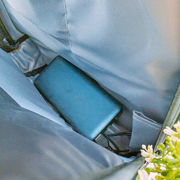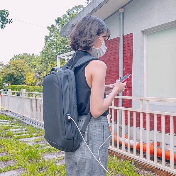 包包外右側接上線便能充電!邊走邊充超方便