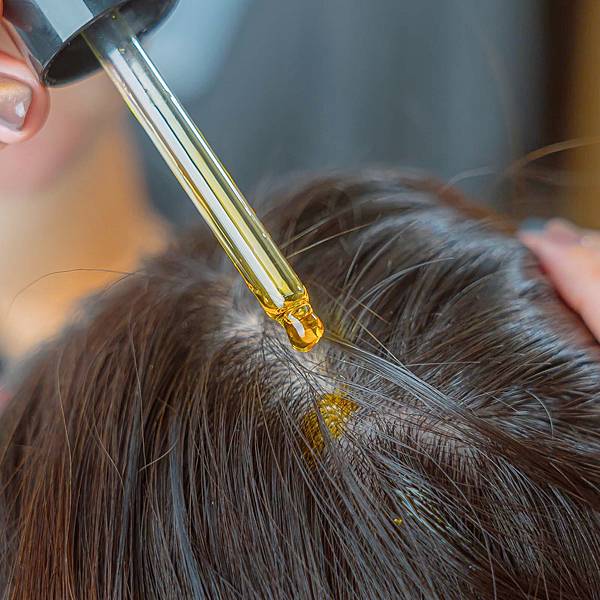 在洗髮前均勻滴在頭頂及兩側頭皮上