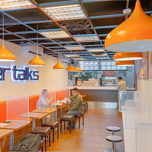 店內也是以明亮的橘色為主,氣氛舒適的快餐店
