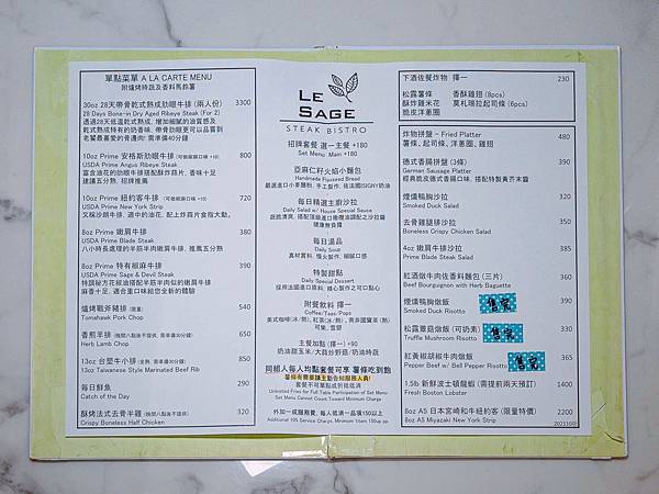 LE SAGE 茱莉金牛排餐館 菜單(別轉走,會持續更新中…)