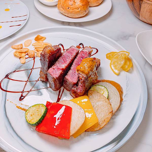 適中的油花,烤後肉汁被鎖在中間,每口都頗具咬勁