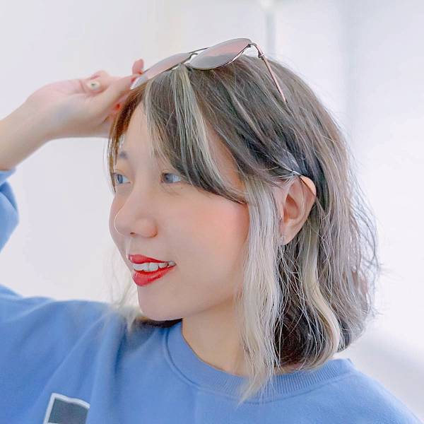 Yuki有幫我加耳圈染,撥耳後讓灰藍色露出的率性風格也滿不錯