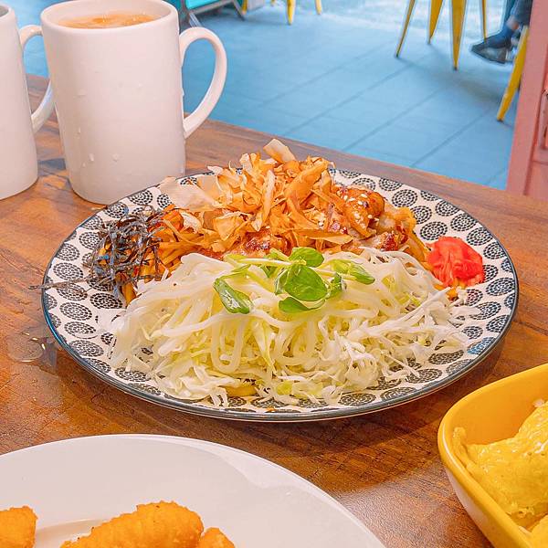 這道是我最喜歡的!滿滿高麗菜、鹹甜醬香的麵體、撒上柴魚及海苔