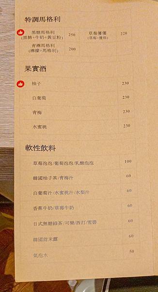 附上菜單~餐點都是經典的韓式料理,有鍋、炸物、燒烤等各種類型