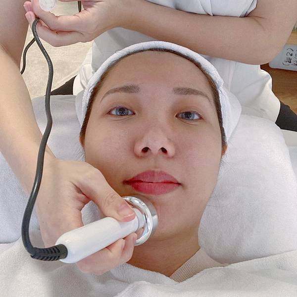 卸妝洗臉後,會用超聲波導入儀做課程前的保養