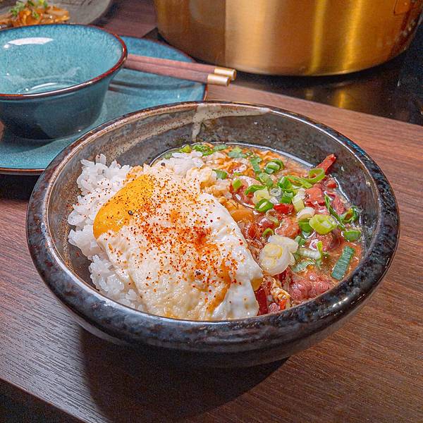 上方會有顆半熟蛋黃,淋上蘊含豐富牛肉香氣的鹹香醬汁