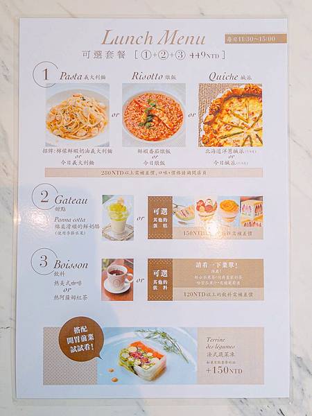 供應時間為每日11:30~15:00,享有主食、甜點、咖啡各一份