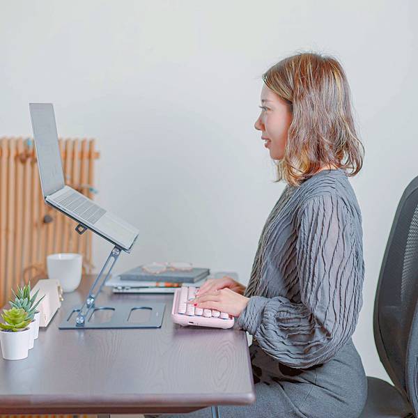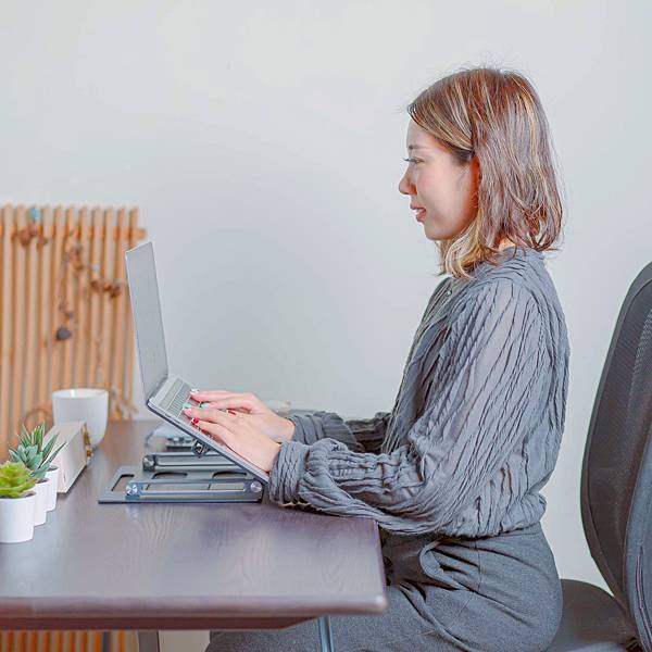 看另一半使用筆電架後,工作起來更加舒適順暢
