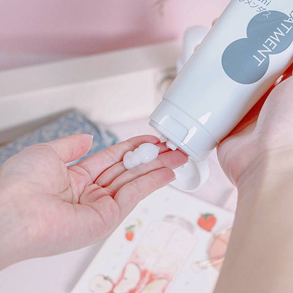 接著取適量護髮素抹於髮尾,待5分鐘後以清水沖洗乾淨