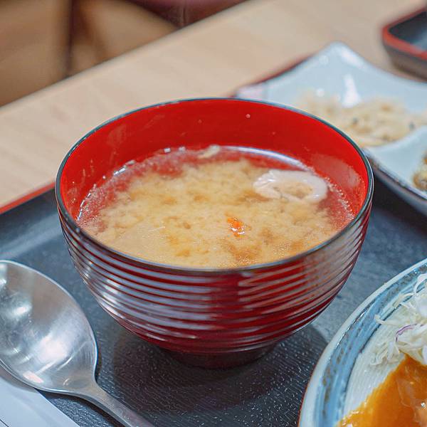 味噌湯是碗料超多的湯,有白蘿蔔、豬肉、馬鈴薯、蒟蒻、紅蘿蔔等很豐盛