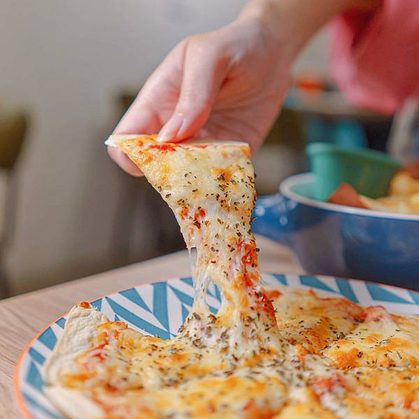 薄皮的披薩也是我比較喜歡的款式,偏甜的蕃茄味、起司香搭載濕潤餅皮