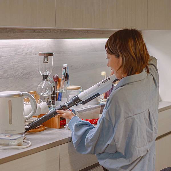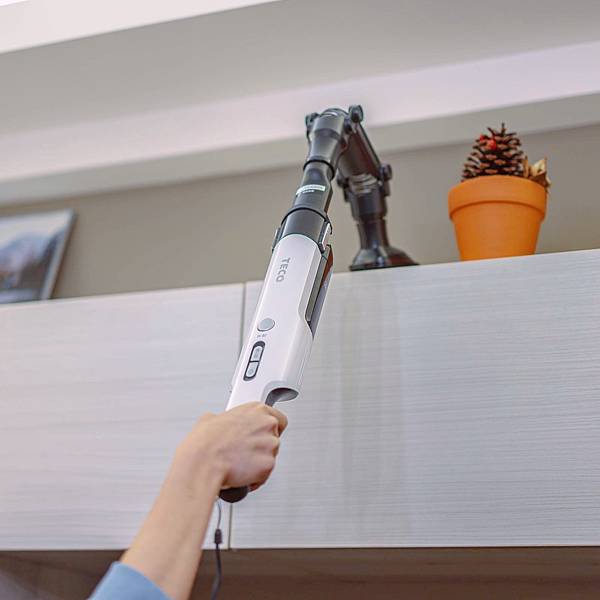 幸好TECO東元這台輕巧順手,尤其要吸高牆面的灰塵時很實用