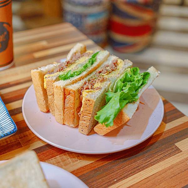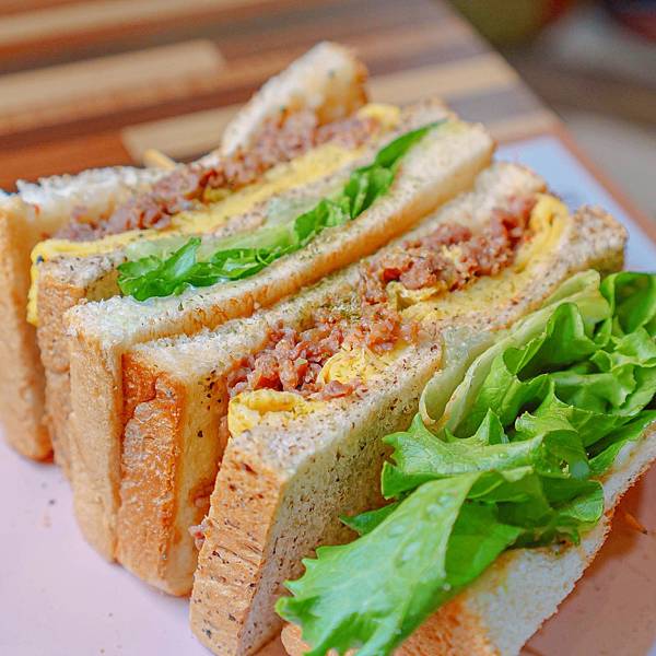 小男孩牛五花吐司是慶三號的招牌之一,總共用三片吐司