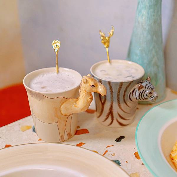 俏皮的動物杯、放入金色攪拌匙~