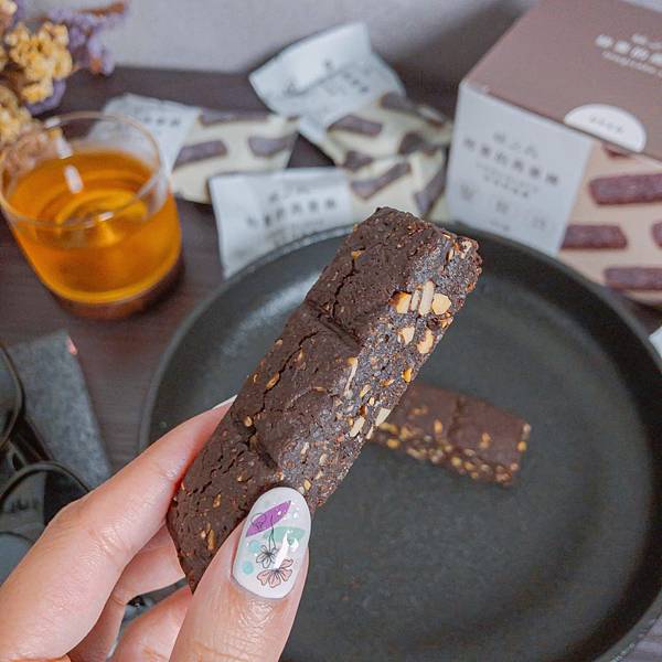 吃起來幾乎沒什麼甜,且和燕麥、杏仁等調和,也沒有苦味,反而是濃醇的可可香氣