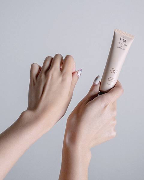 到海邊一定要選擇海洋友善的防曬,附贈的PSK是純物理全能潤色隔離霜
