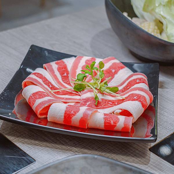 牛五花帶有脂肪香氣,很適合涮入麻辣鍋中,微辣和脂肪香交融很好吃