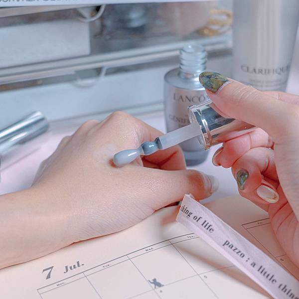 我通常的保養順序是用完極光水,臉部是用小黑瓶、眼周則是用亮眼冰珠按摩