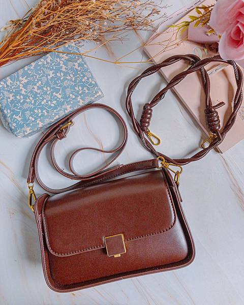 法式優雅特色揹帶方包-優雅咖 NT.790