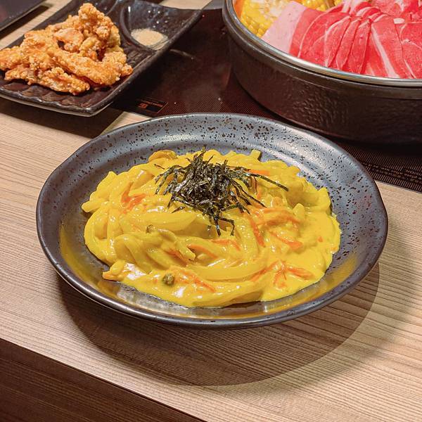 看到鮮黃色的麵不禁十分好奇,原來是加入薑黃粉的烏龍麵!