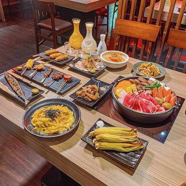 不僅有酒類喝到飽,餐點選擇豐富,從串燒、主食到鍋類都有