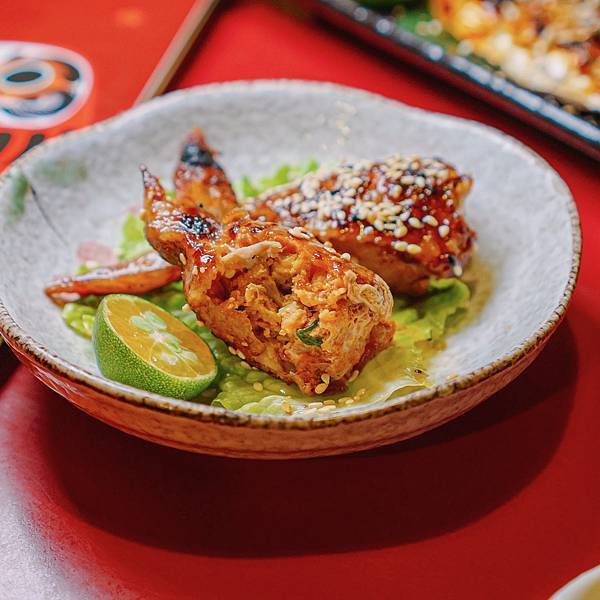 二節翅已經取除骨頭、並內餡塞入明太子,鹹香帶點辣度,十分好吃