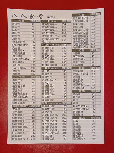 當時看到八八食堂,不僅有生魚片、燒烤、拉麵等豐富選擇
