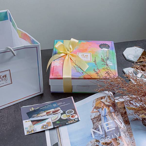渲染色彩的外盒並綁上緞帶,附上一根金色蠟燭,可以直接下訂當作禮物