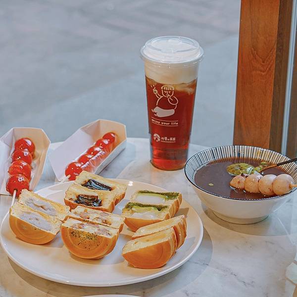 夾著厚實的白玉、Q嫩彈牙!因為蘊含茶香,甜度不高很剛好