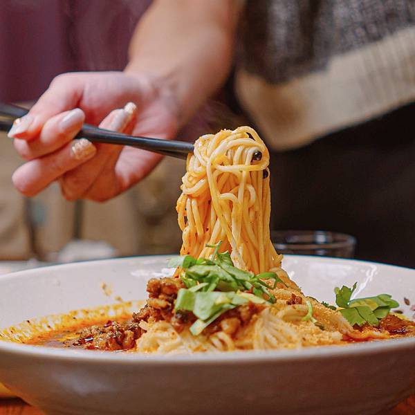 麵條吸足湯香後仍Q彈有勁,四川擔擔麵是我覺得最辣的餐點