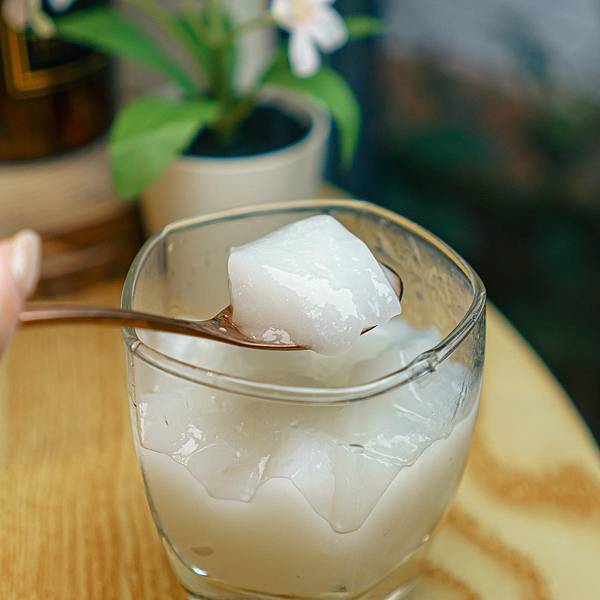 莫方茶點的杏仁凍屬於杏仁味濃厚,因此加入飲料中時