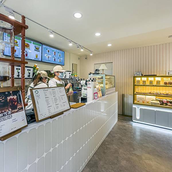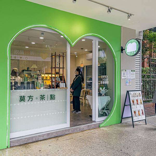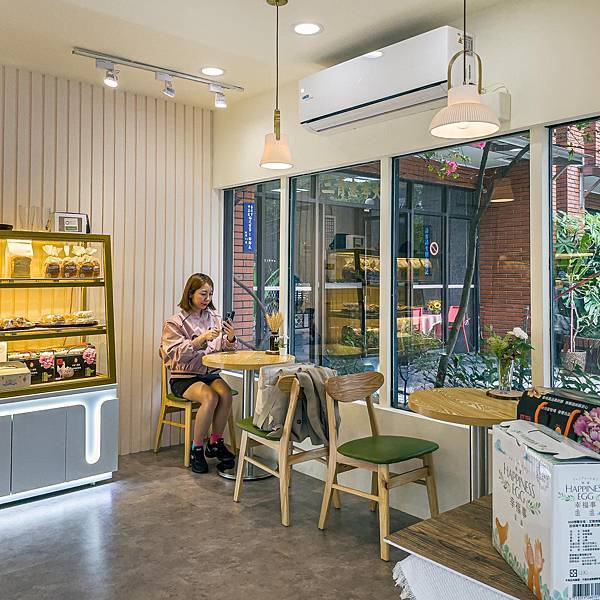 亮綠色的外觀很吸引人注目,店內則是簡單的白與木色家具