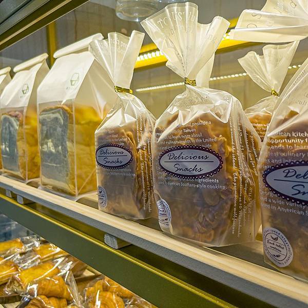 不僅有多種飲品選擇,架上還會有不定時的麵包、點心