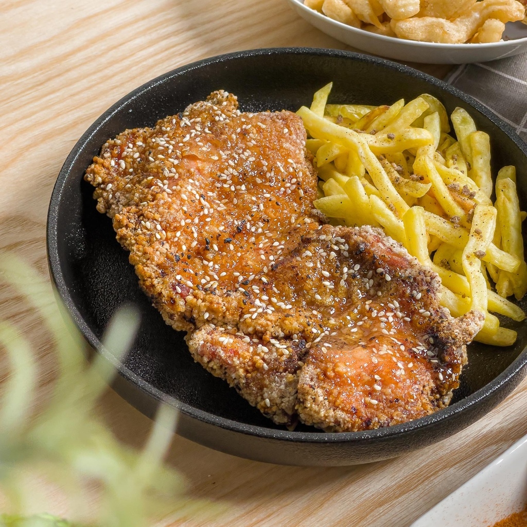 台式-桔醬烤雞排+細薯條+飲料 NT.139 不客觀推薦★★★★★