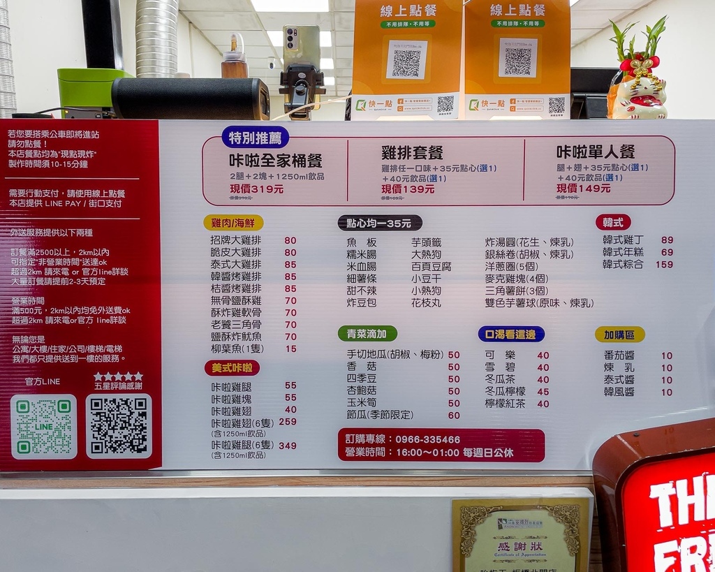 他們的特色在於有四種風味的炸物:台式、美式、韓式、泰式